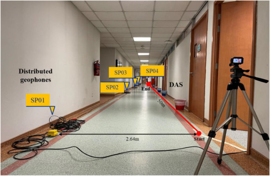 This study advances built-environment occupancy monitoring by introducing Distributed Acoustic Sensing (DAS) as a scalable alternative to labor-intensive geophone deployment. A machine-learning method leveraging temporal dependency and spatial continuity enables accurate footstep recognition and trajectory tracking. Benchmark tests show high accuracy for both sensors, while DAS offers flexible resolution and rapid large-scale deployment for crowd-risk management.